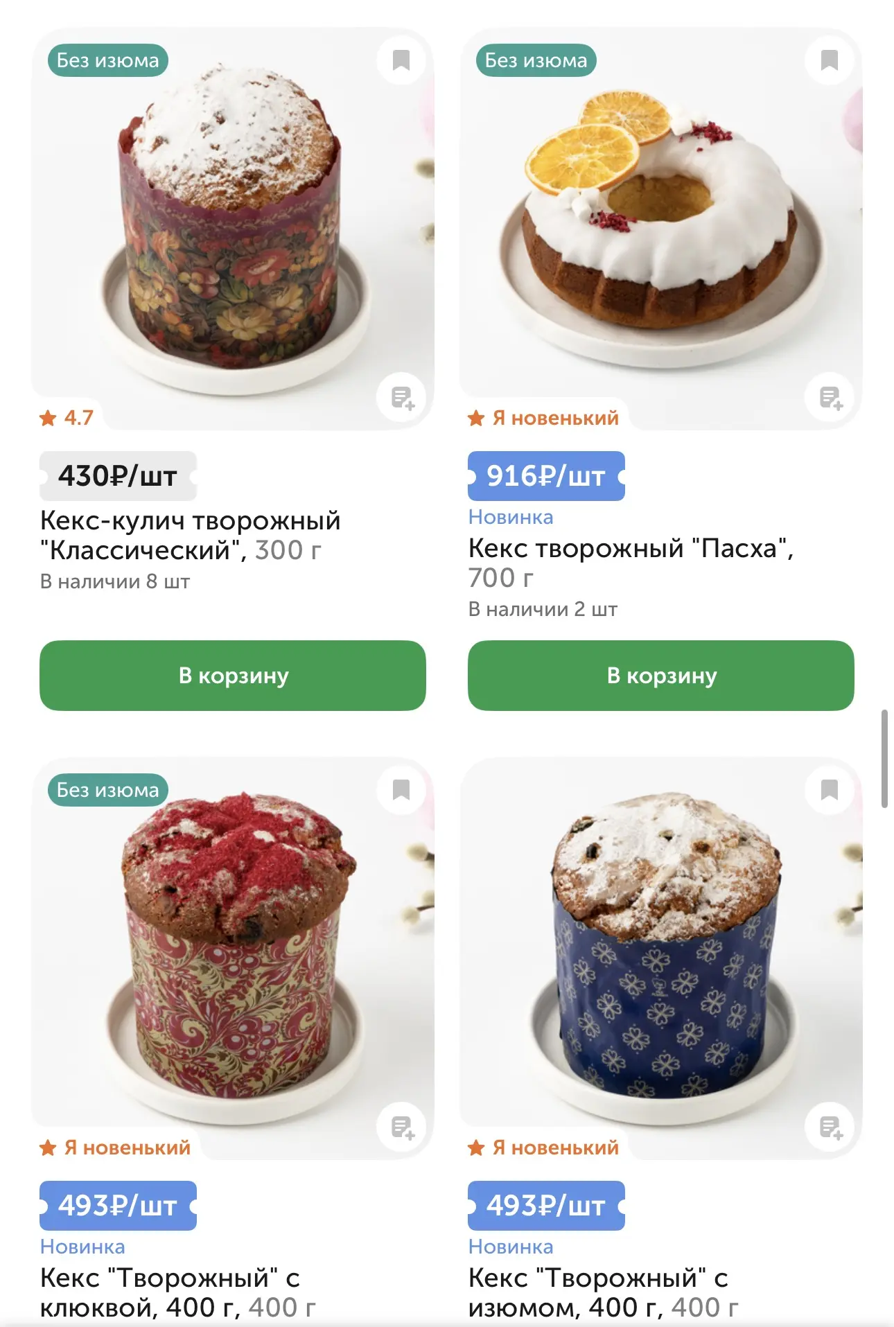 - Творожный нарядный кекс обойдётся в 916 руб., но и грамм там – 700.