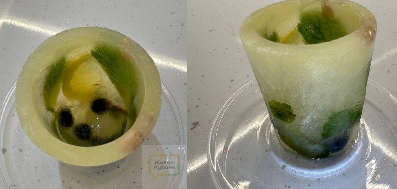 Залить в форму можно простую воду или воду с пищевым красителем (может, вам захочется розовые, голубые стаканы или красные - в честь символа 2026 года - Огненной Красной Лошади). Можно заморозить не воду, а сок, например, лимонный - это зависит от того, какие напитки вы подадите гостям в ледяных стаканчиках.