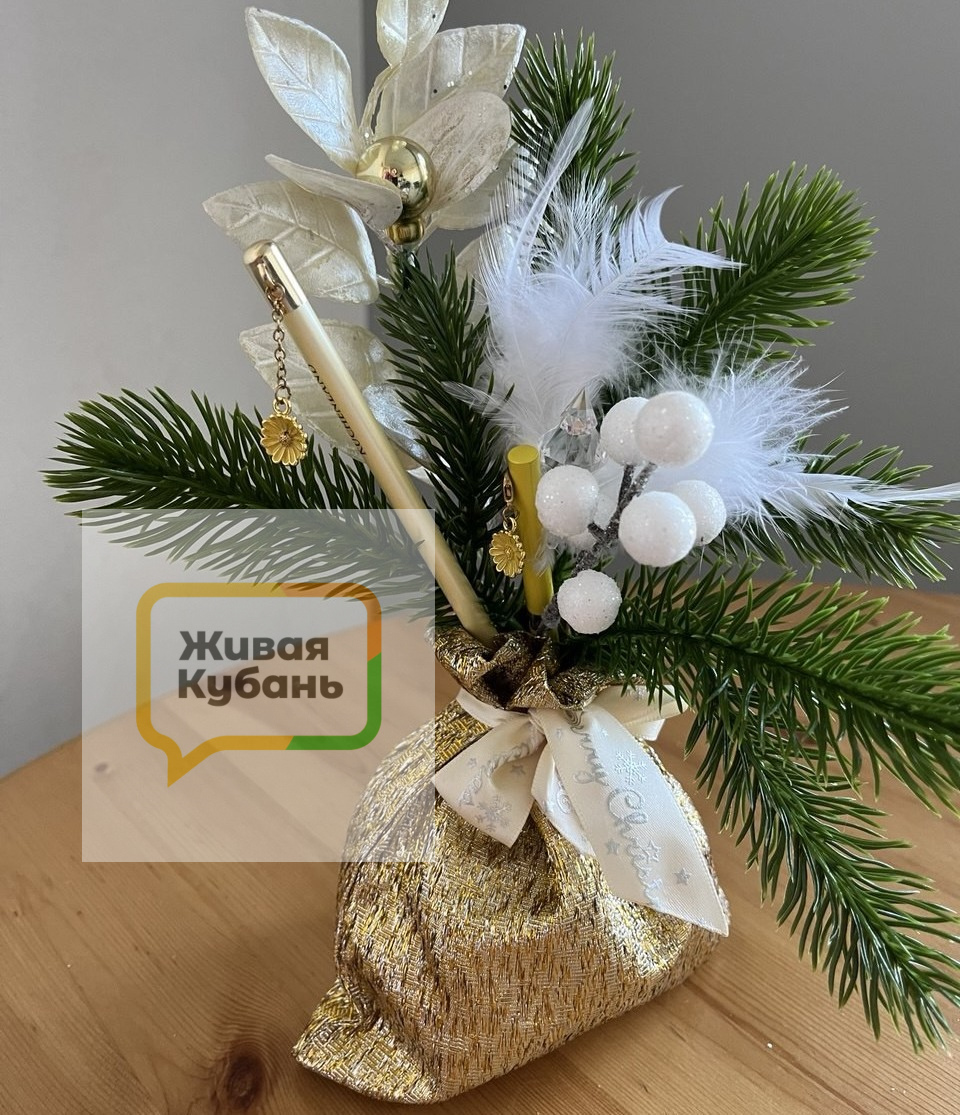 Представительницы прекрасного пола оценят оригинальную подачу новогоднего букета и подарка. По сути это упрощенная вариация адвент-календаря. Что прячется в мешочке – украшение, любимые духи или шоколадные конфеты, не столь важно. Важно, что такой праздничный кулёк разбудит забытые детские чувства от предвкушения спрятанного под елкой презента от Деда Мороза.