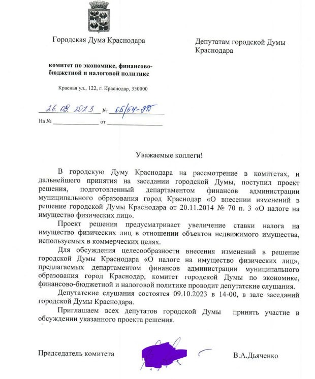 В Краснодаре планируют поднять налог на коммерческую недвижимость. Депутатам городской думы уже разослано соответствующее уведомление.