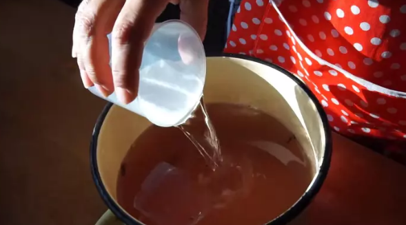 4. Приготовьте рассол. В кастрюлю с жидкостью добавьте гвоздику, сахар и соль, влейте уксус. Количество ингредиентов в рецепте рассчитано на банку объемом 3 л. Поставьте рассол на огонь, доведите до кипения. Дайте жидкости 2 минуты прокипеть, чтобы соль и сахар растворились, а затем снимите с огня.