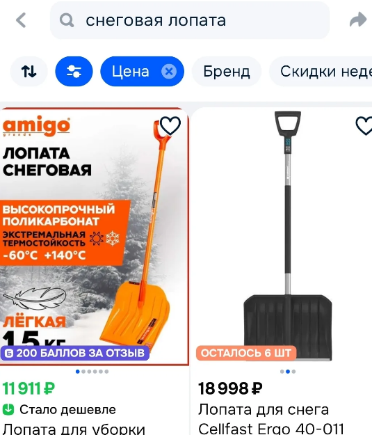 На популярных маркетплейсах цены на снеговые лопаты варьируются от 400 до 18 тысяч рублей. На сайте бесплатных объявлений жители региона также сообщают о продаже лопат, цены от 350 рублей и выше.