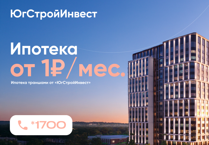 Предложение доступно по ставке от 28% годовых в рамках программ ПАО Сбербанк «Приобретение строящегося жилья» и «Акция для застройщиков» при приобретении строящегося жилья у юридического лица по ДДУ/ДУПТ или готового жилья у застройщика – партнера Банка: ГК ЮгСтройИнвест, при первоначальном взносе от 20,1% от стоимости кредитуемого жилого помещения.
