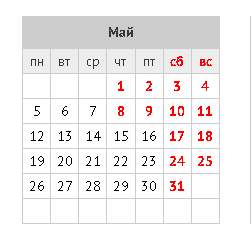 Выходные дни на майские праздники будут состоять из двух частей, каждая по четыре дня. Сначала с 1 по 4 числа месяца, а затем с 8 по 11.