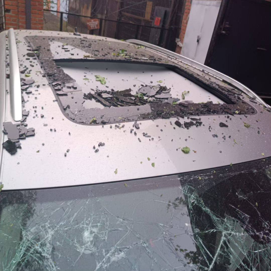 - Хочу обратиться в первую очередь к губернатору Краснодарского края Вениамину Кондратьеву и к мэру Краснодара Евгению Наумову. Почему не предлагается никакая помощь по возмещению ущерба автомобиля? Разбито лобовое стекло, панорамная крыша, капот пробит насквозь свинцовыми поражающими элементами, по периметру автомобиля повреждены все двери. Людям, у кого выбило окна/стекла, уже произвели замену. Нам что делать? – вопрошают горожане, демонстрируя повреждения на машине.
