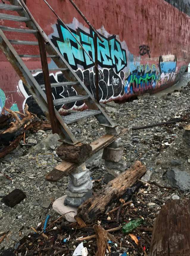 На спуске вам встретится стихийный монумент, перевязанный атрибутом современности - медицинскими масками. На «арт-объекте» обозначена дата морского ЧП, рядом с ним - качели с прекрасным видом на Новороссийскую бухту.