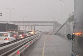 Кран обрушил габаритные ворота на Южном обходе Краснодара и перекрыл движение