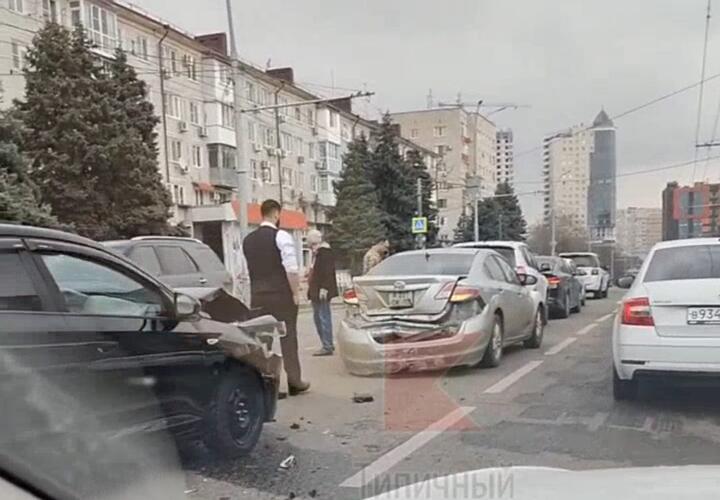 Несколько машин столкнулись в Краснодаре в микрорайоне Фестивальный. Очевидцы сняли видео на улице Атарбекова. По некоторым данным врезались 5 автомобилей, а кто-то сообщает про 6 «участников» ДТП.