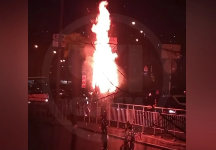 Пальма вмиг вспыхнула, словно спичка. За считанные минуты дерево сгорело дотла.