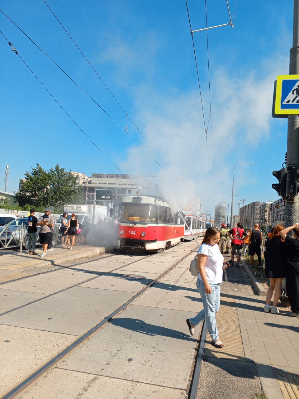 Трамвай задымился на улице Московской в Краснодаре. В МЧС сообщили, что произошло «короткое замыкание установки без последующего горения». В КТТУ причиной назвали «техническую неисправность».