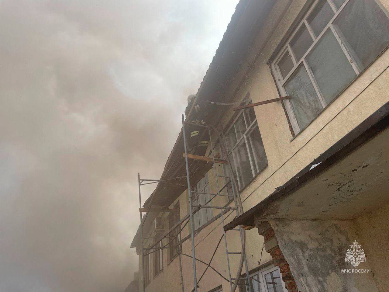 - В Апшеронске огонь охватил 1 000 квадратных метров двухэтажного склада с пиломатериалами. На месте работают 38 специалистов и 12 единиц,- сообщает МЧС.