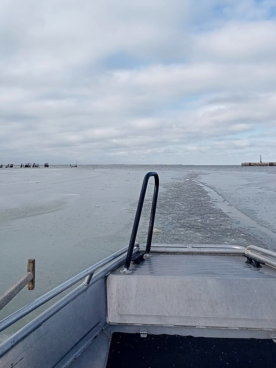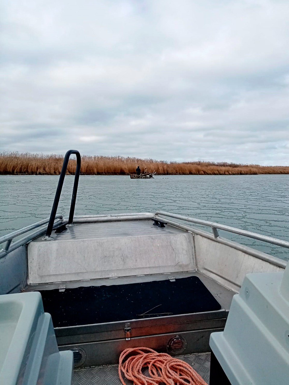 В Приморско-Ахтарске двое мужчин оказались в «ледяном плену». Как оказалось, охотники возвращались на лодке с промысла, и попали на участок лимана, покрытый коркой льда.
