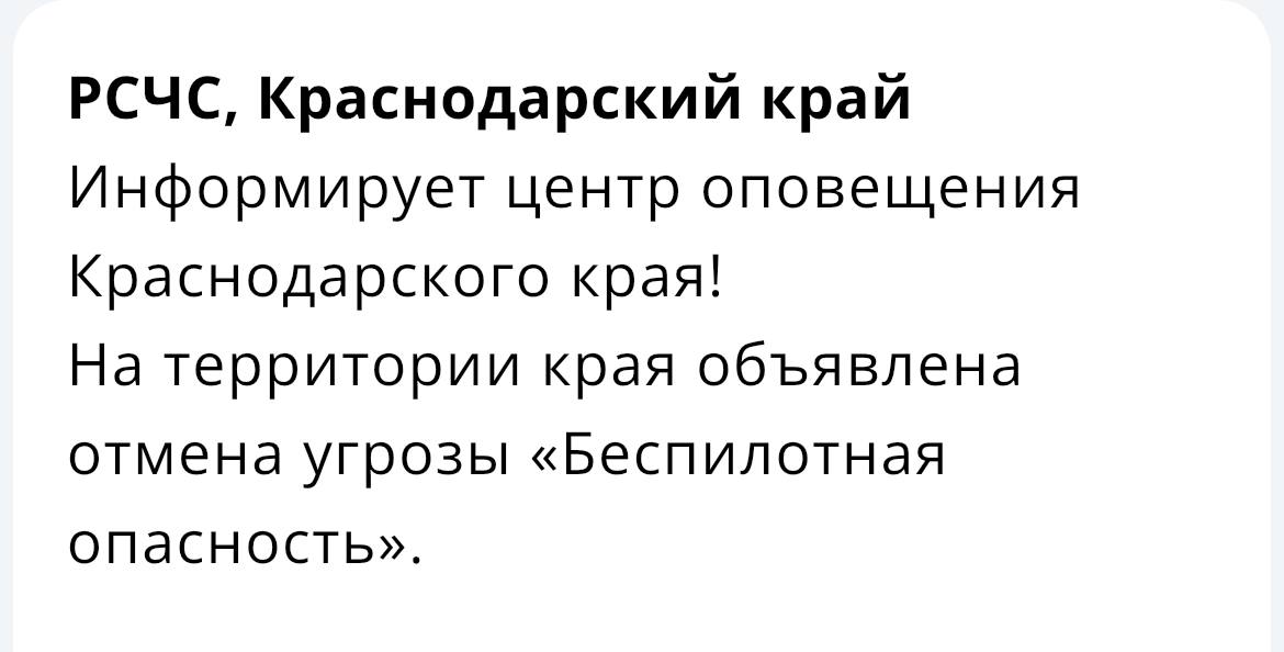 Причина этих действий - на территории Краснодарского края была объявлена беспилотная опасность.
