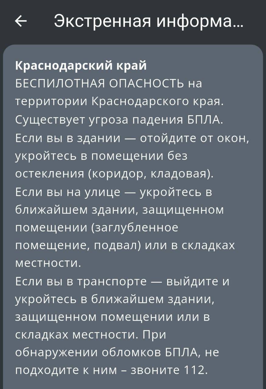 Угроза охватывает весь регион, однако из Новороссийска нам сообщают, что местным жителям такие сообщения на телефон не поступали.