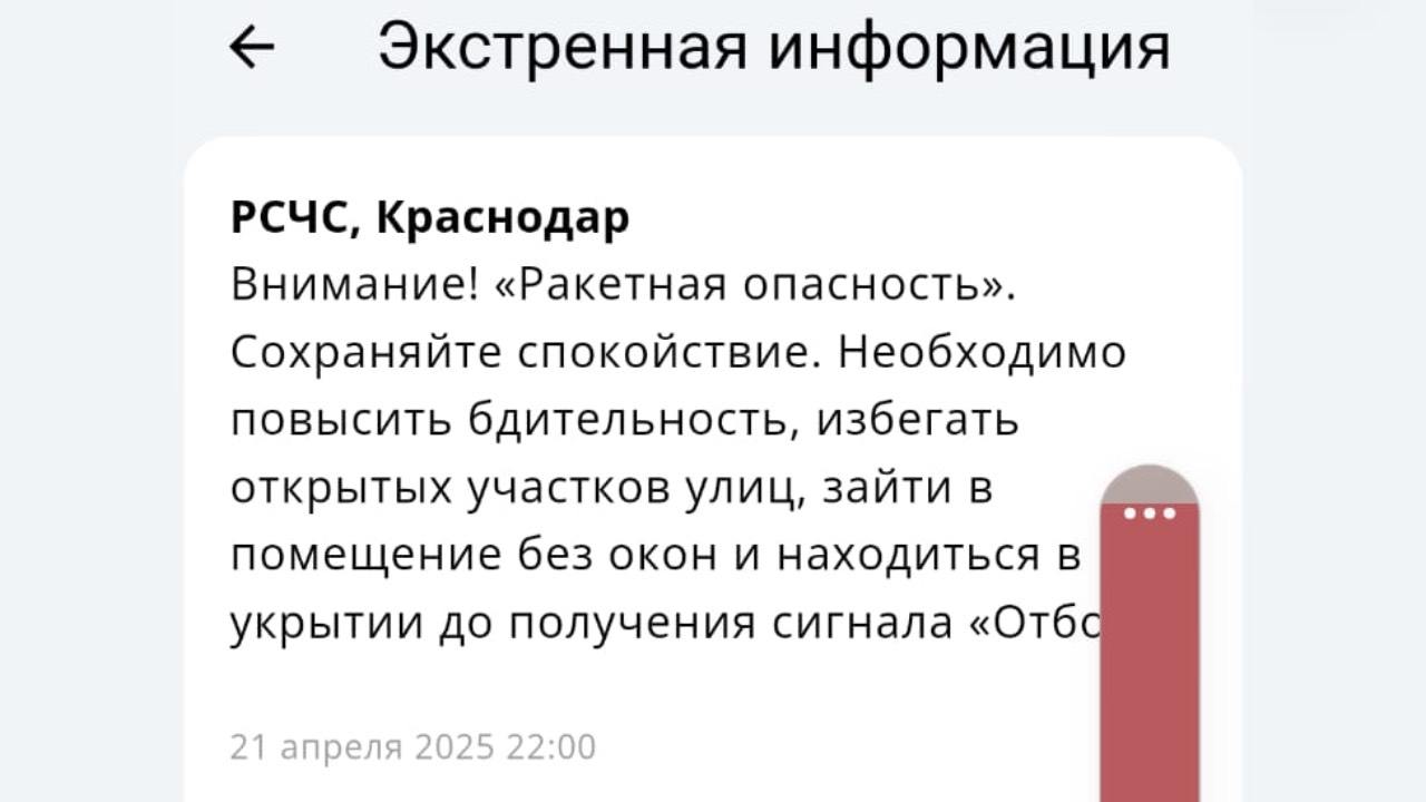 В Краснодарском крае объявили ракетную опасность.