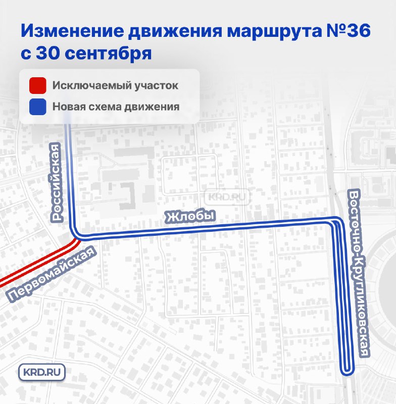 Администрация Краснодара предупредила горожан о том, что автобус № 36 поменяет маршрут. Изменения вступят в силу в понедельник, 30 сентября.