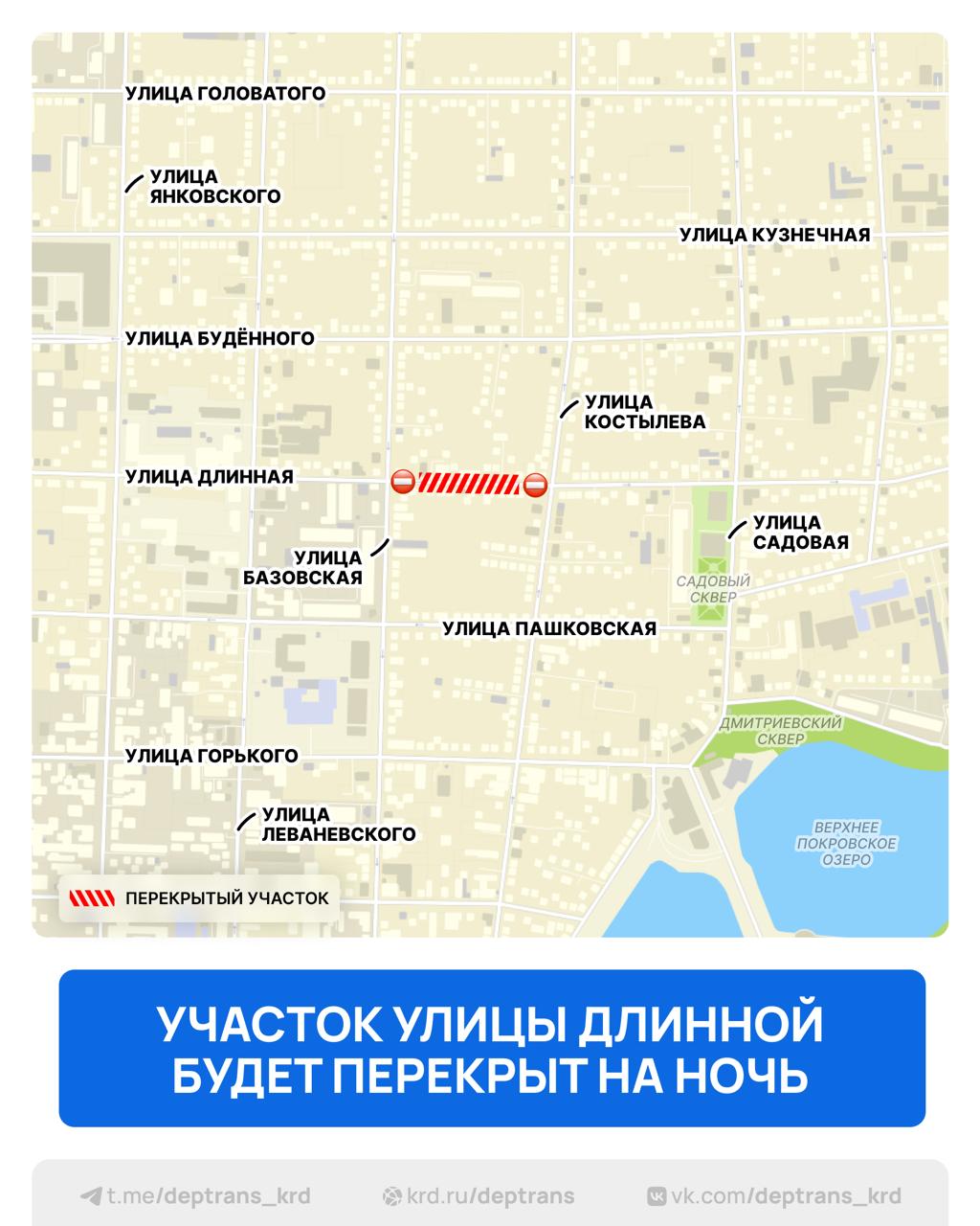 Сегодня, 16 июля, с 20:00 до 8:00 17 июля на улице Длинная, на участке от улицы Базовской до улицы Костылева, движение транспорта будет перекрыто.
