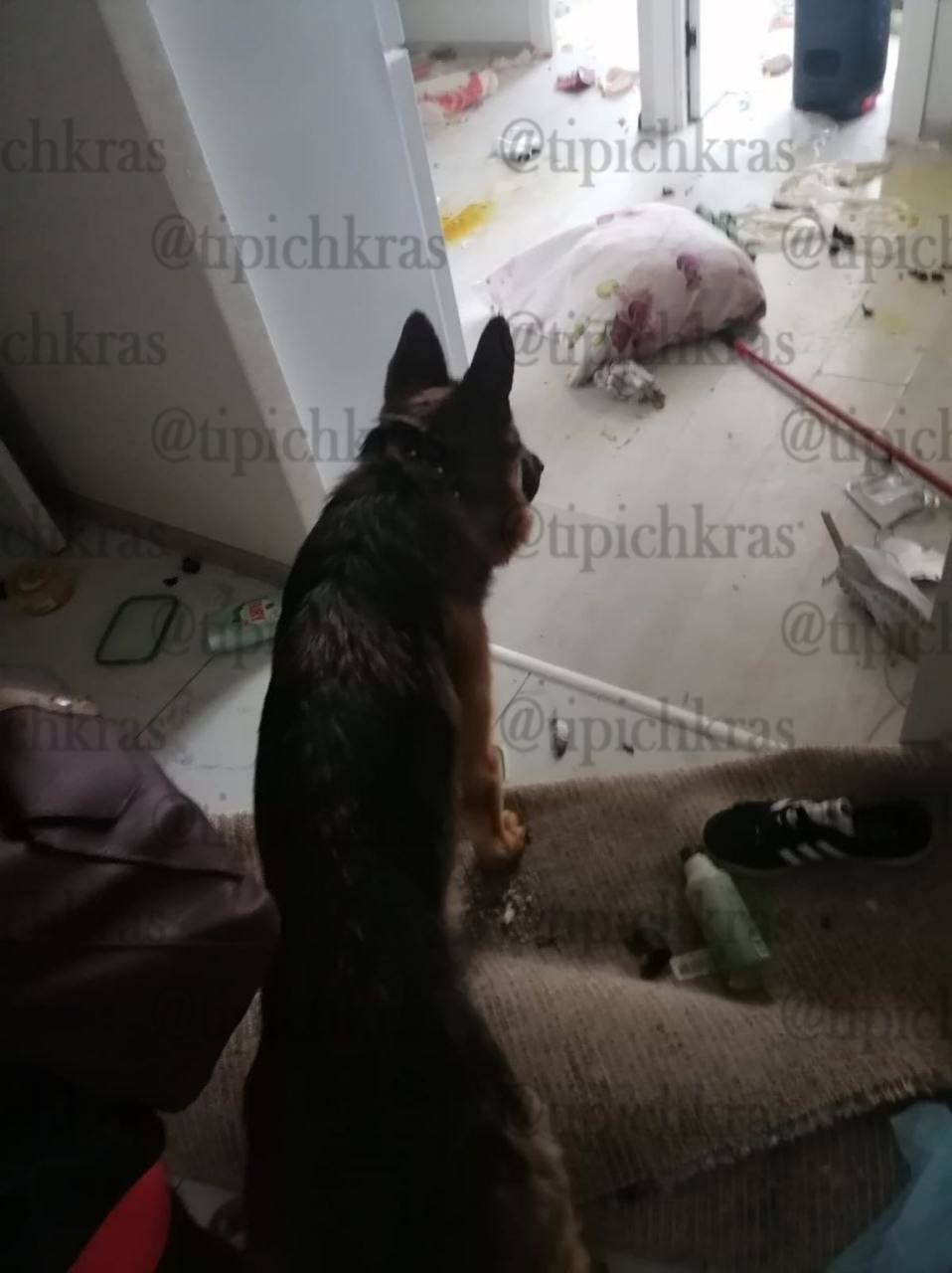 Наконец, сегодня полиция вскрыла дверь и освободила овчарку, которую бросила пьяная хозяйка.