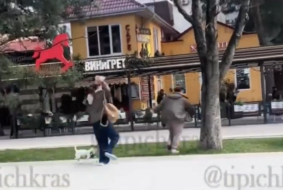 Ошеломлённая произошедшим, собачница кинулась бежать с места конфликта. Инцидент прохожие сняли на видео.