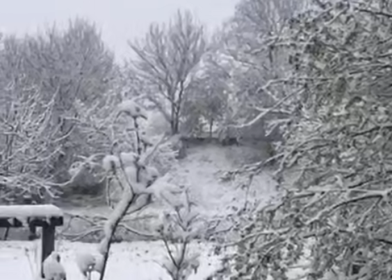 В Краснодарском крае 9 апреля выпал снег. В некоторых районах региона даже образовались сугробы. Жители сообщают о провисших деревьях, на ветви которых налип снег.