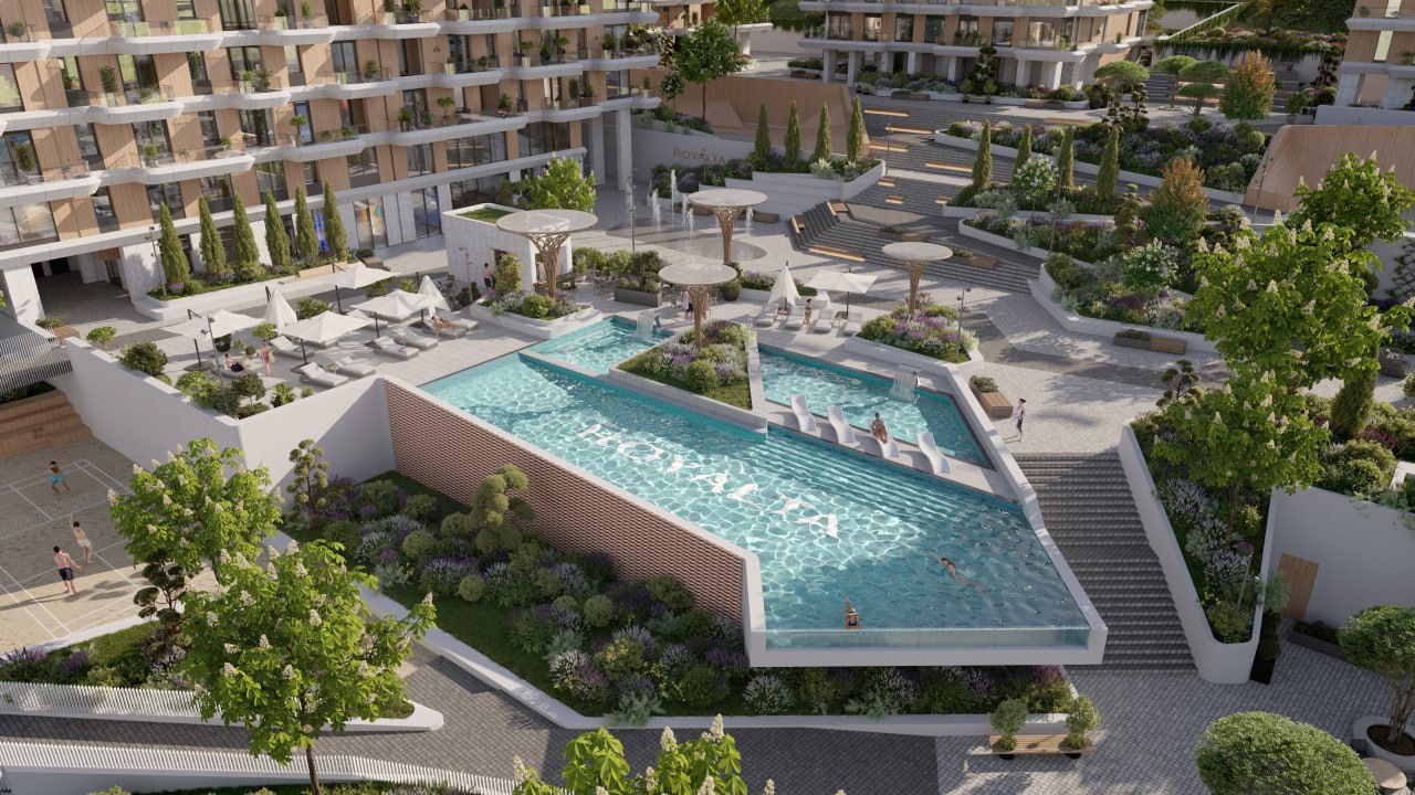 Инфраструктура «Роялты» выходит за рамки привычных стандартов: на четырех уровнях комплекса, помимо жилых корпусов, расположатся дворы с авторским ландшафтным дизайном, спортивные хабы, воркаут-зона, площадка для пляжного волейбола. Главной точкой притяжения станет 25-метровый панорамный инфинити-бассейн.