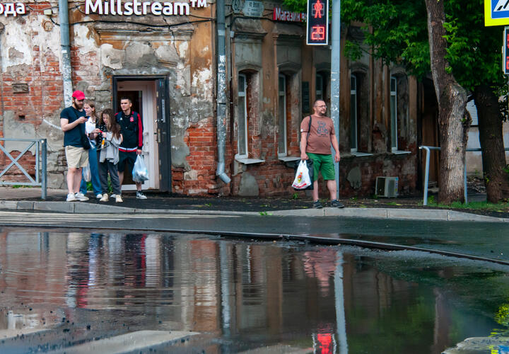 Огромная лужа появилась и под знаменитым «мостом дураков» на Вишняковой улице. Люди по колено в воде, пешком по затопленным тротуарам добираются домой.Такую картину можно наблюдать в разных районах города.