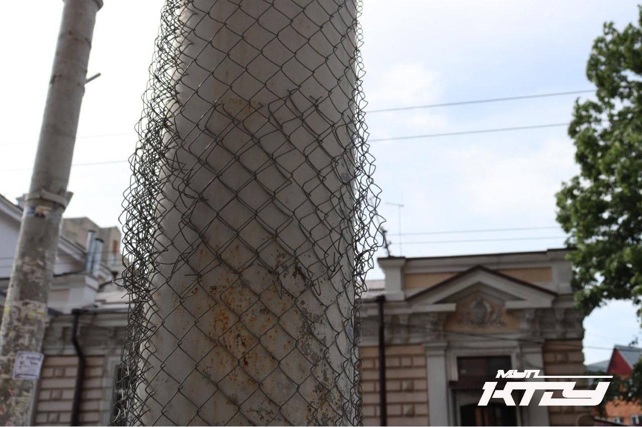 - Антивандальные сетки устанавливаются вокруг столбов и других уличных объектов, чтобы затруднить или полностью исключить возможность прикрепления наклеек, плакатов или иных рекламных материалов. Именно такие сетки устанавливаются на опорах контактной сети сотрудниками службы энергохозяйства МУП "КТТУ". На сегодняшний день смонтировано около 2500 подобных конструкций. С их помощью поддерживать чистоту и препятствовать нелегальной рекламе стало намного проще,- отмечают в МУП.